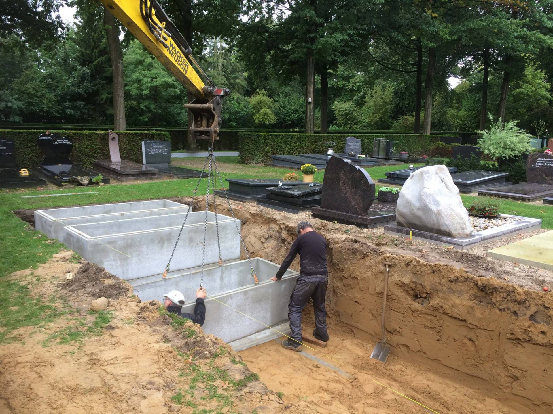 Onze grafkelders zijn gemaakt van hoogwaardige, zelfverdichtende beton. Indien gewenst kunnen wij volledig ontzorgen; van levering tot montage en grondwerkzaamheden.